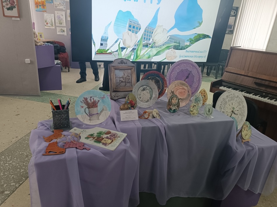 В преддверии Дня женщин в нашем университете стартовал выставочный проект «Мелодия сердца: творчество девушек и женщин ГГУ», объединивший произведения, выполненные в самых разных техниках: живопись, текстиль, вышивка, вязание, цифровое искусство и многое другое.