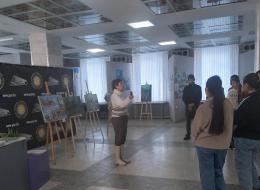 Студенты группы М-23 вместе с доцентом кафедры довузовской подготовки и профориентации Осиповой Т. А. посетили выставочный зал ГГУ имени Ф. Скорины, где открылась персональная выставка члена Международного союза писателей и мастеров искусств Сергея Синякова «Грани времени».
